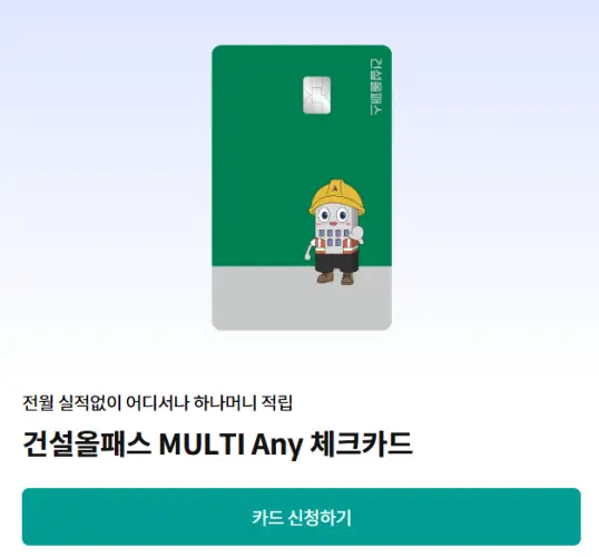 3. MULTI Any 체크카드 신청 메뉴를 선택합니다.